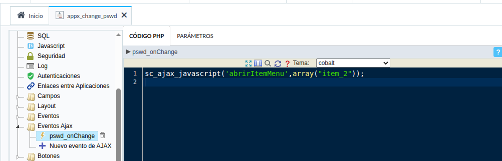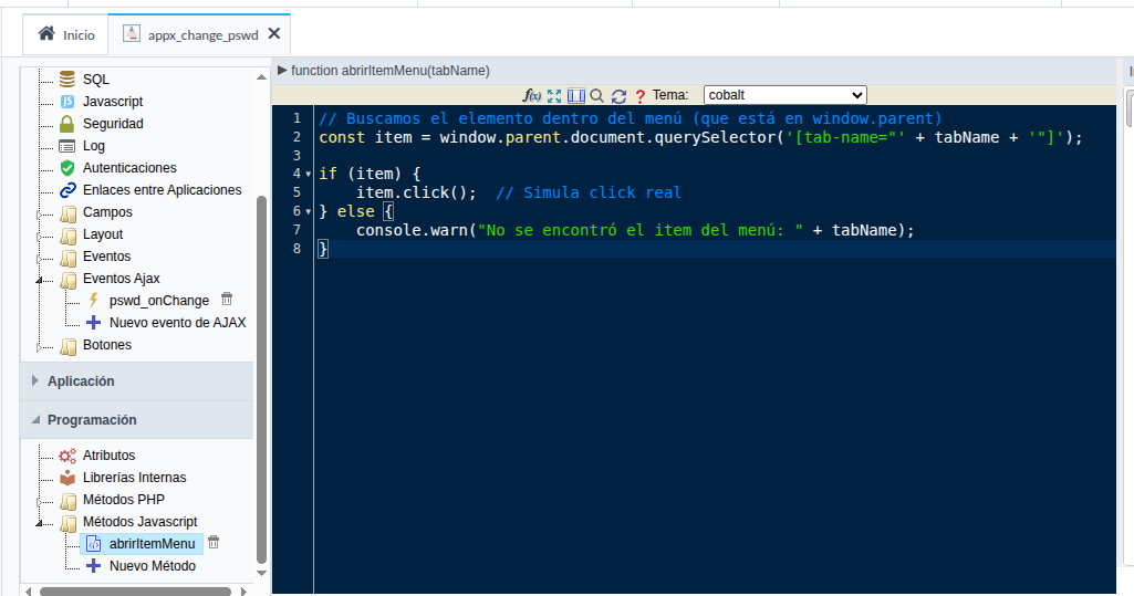 You can open a menu item by simulating a click with JavaScript. In this example, another application is opened in tab within the onChange event.
