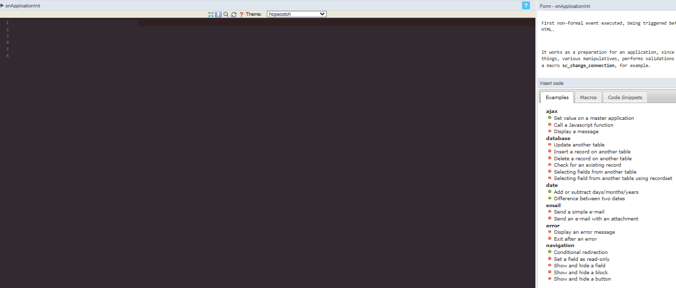 onApplicationInitTrap: Many database macros are not fully supported or initialized inonApplicationInit. Moving these calls toonScriptInitis often the solution, as it is the first event where the database connection is guaranteed to be ready.