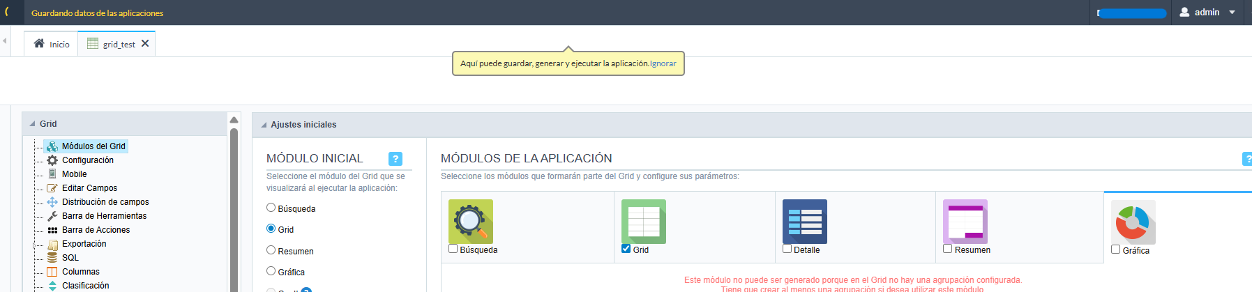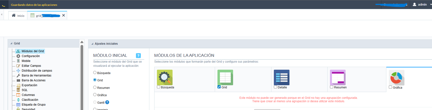 Hello, when I create a grid and try to uncheck the applications I don’t need and save, it just keeps processing and doesn’t save the changes. I tried with different tables, and the problem is the same in every grid where I try to uncheck the applications; it just keeps processing and doesn’t save. I have version 9.13.006(8).