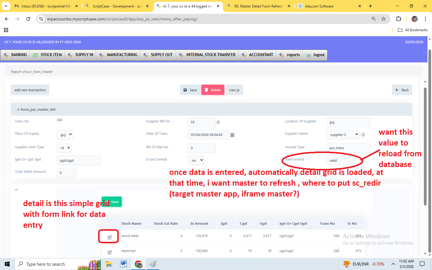 I have a master/detail form, say master “Form A” and editable grid view “Form B”.