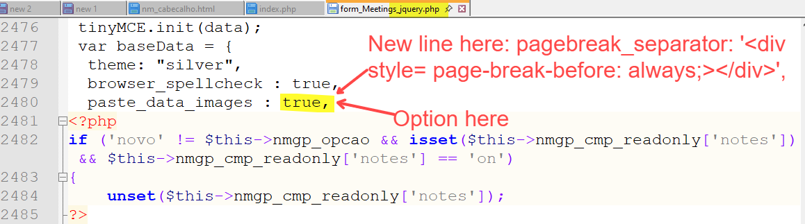 to fix both the pasting of pictures and correcting the pagebreak comment nonsense. (This is a TinyMCE bit of nonsense)
